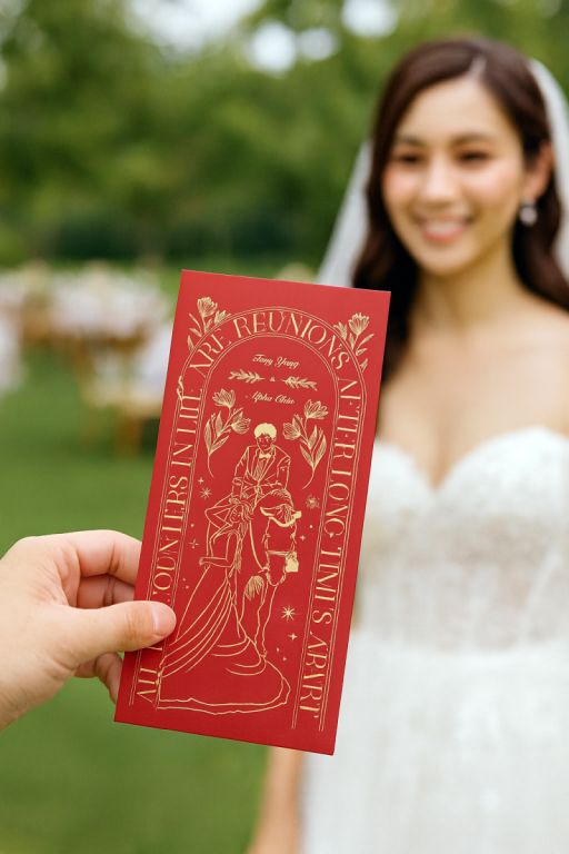 做一批 婚禮紅包客製化,賓客回家後還是看得到你們的名字與圖案,那是一種「喜事延續到日常生活」的小確幸。