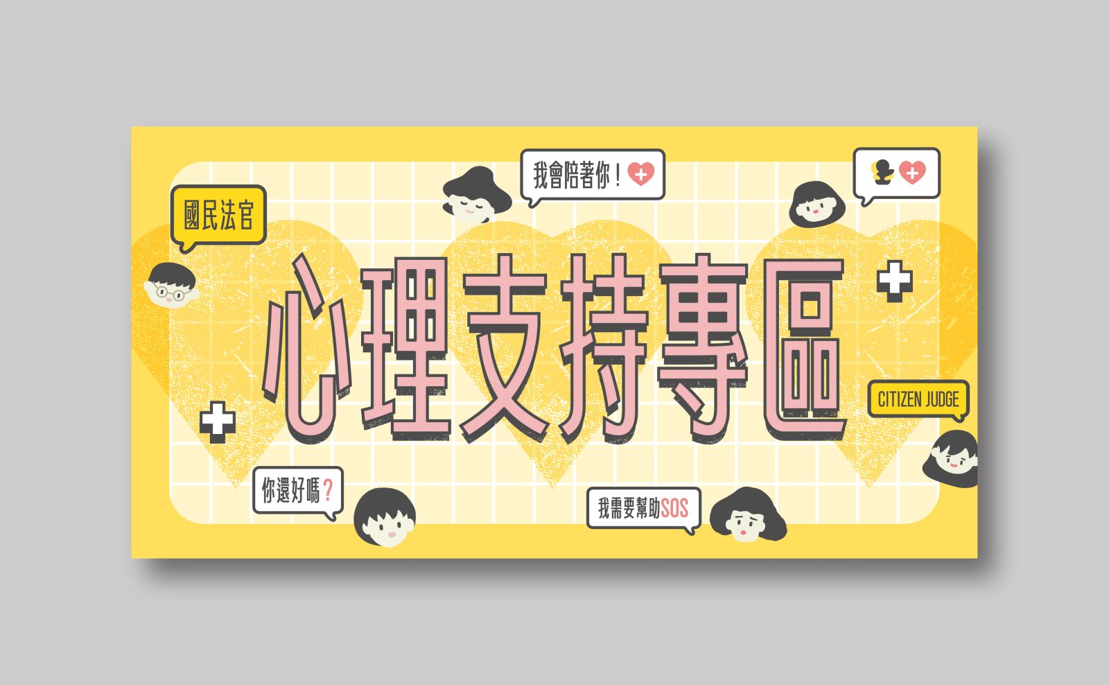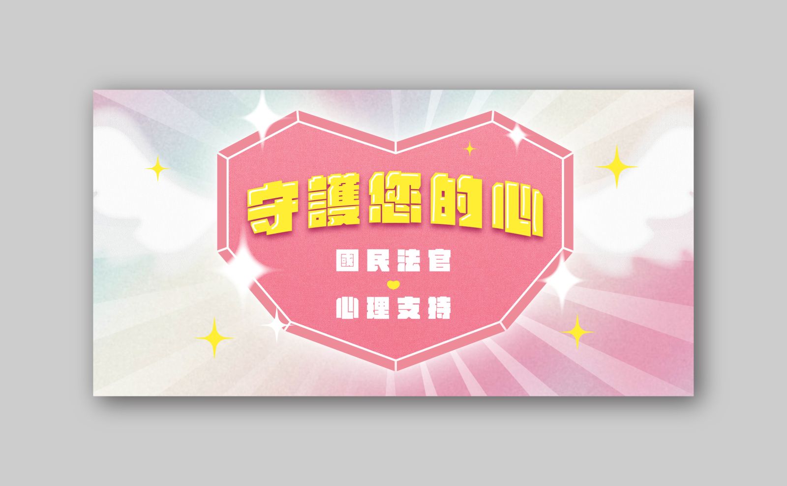 此設計以溫暖可愛的粉黃配色呈現,延續國民法官四冊裡的小人物,添加溫暖對話,希望能夠帶給所有人心靈上的支持,有時候只是小小的一句對話都能夠打動對方,給予對方支持!