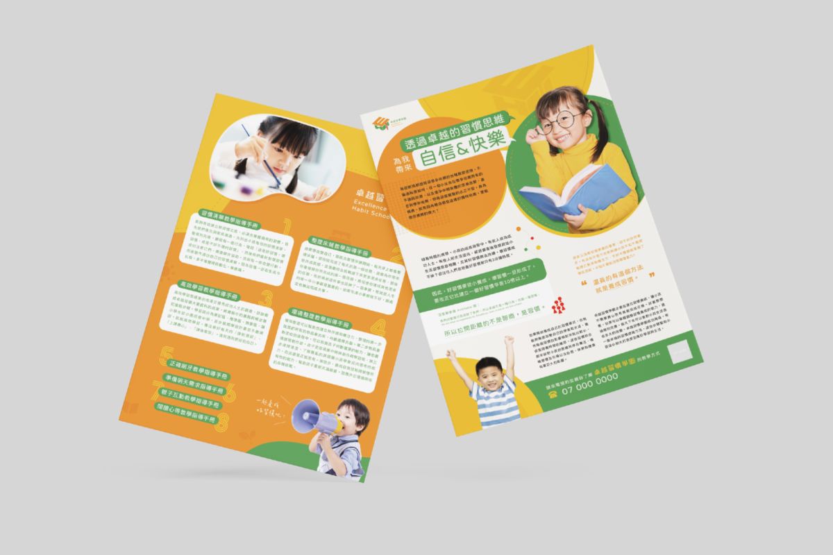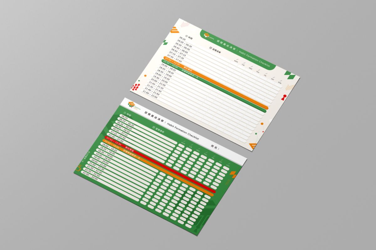 顏色以亮橘色搭配草綠色,綠色亦有健康成長的含義,整體視覺更生動且對比度大