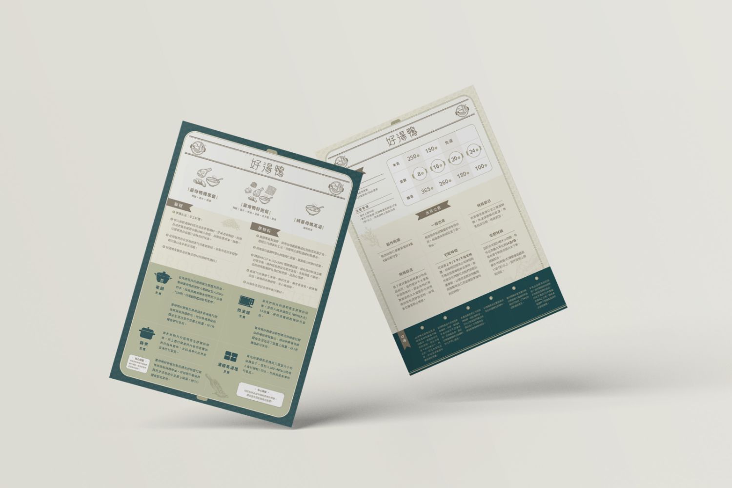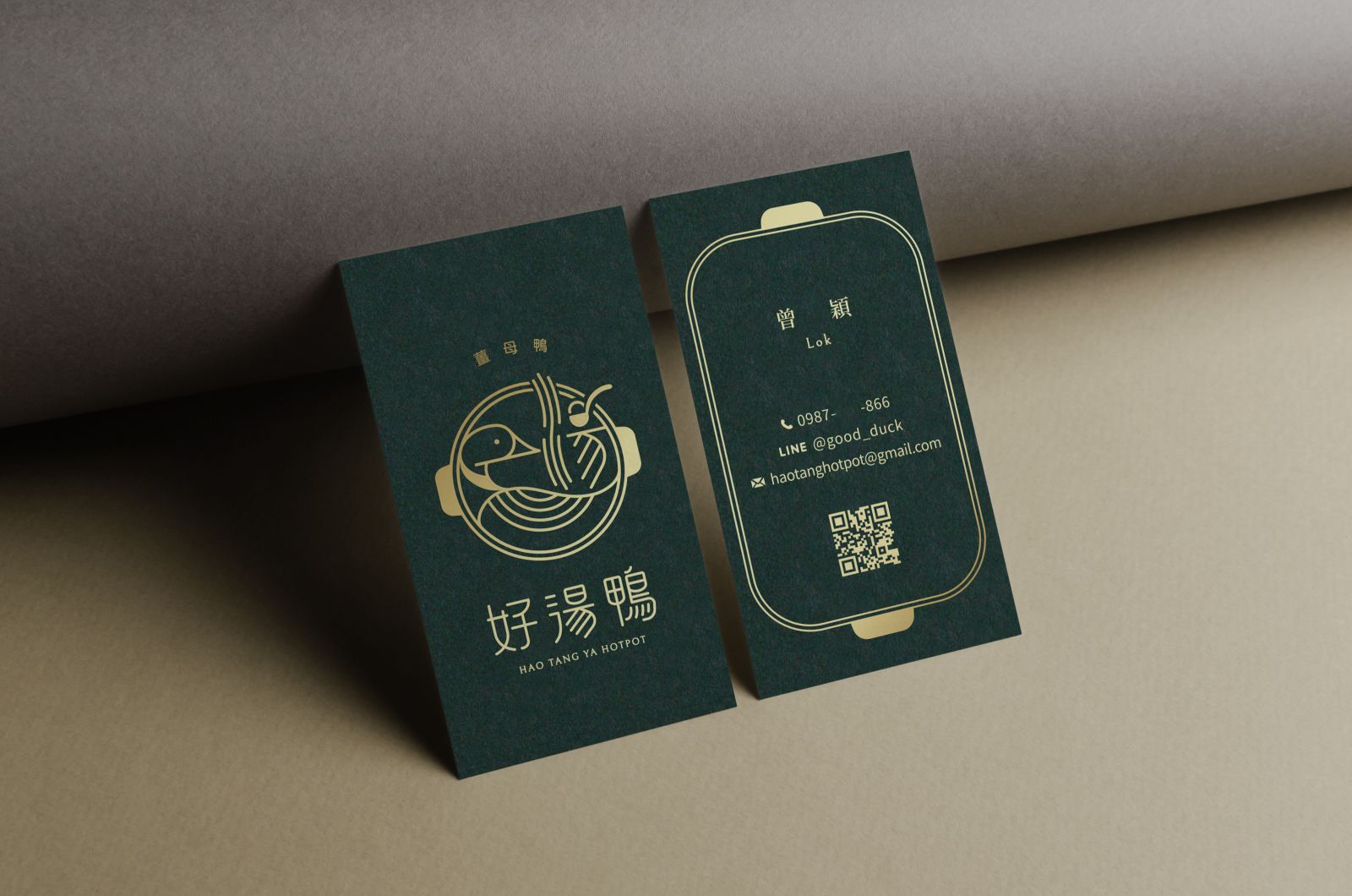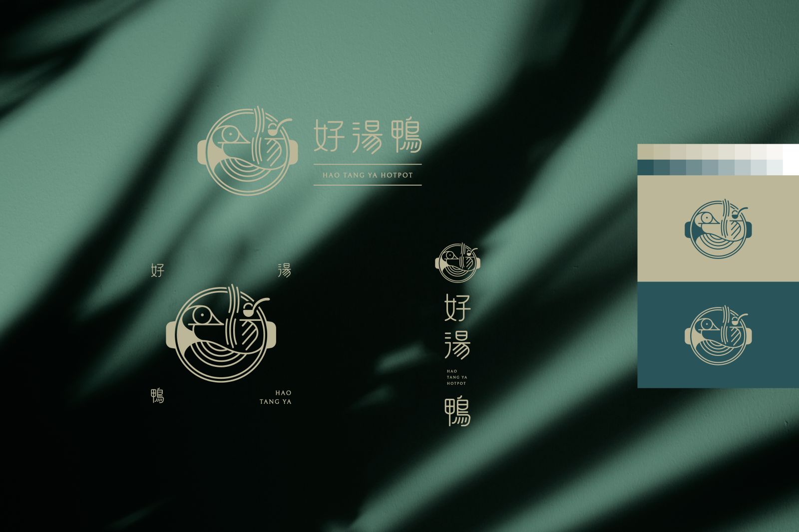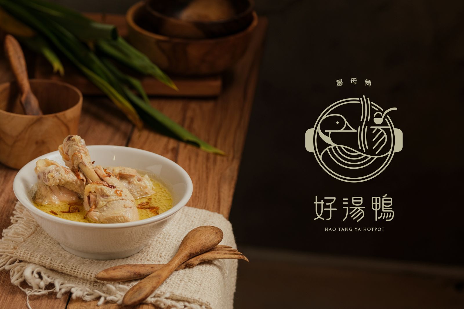 以薑母鴨個人鍋為設計主軸,整體以中式徽章方式呈現,將鍋子作為外框造型,並使用等寬線條表現鍋中的元素,帶出中式現代氛圍。鍋中鴨子波浪曲線的身軀與熱湯結合、共用元素,清楚表達品牌的營業項目。