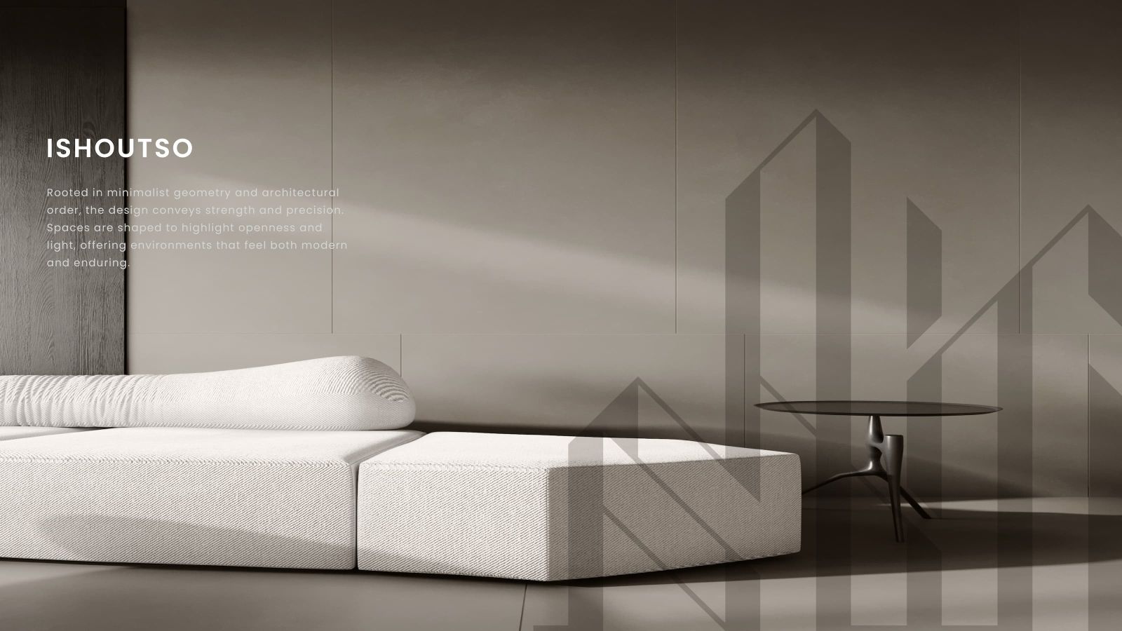 The English brand name "ISHOUTSO" is broken down and combined with city line elements, transforming the letters into a simple geometric sense. The layering and stacking of the letter structure presents the majestic outline of the building, conveying the brand's steady pace and positive corporate spirit. The overall style is modern and neat. The standard font is designed with bold as the main font structure, and the font thickness ratio is consistent, showing a grand and stable style. The standard color is gray-brown and white as the main colors, creating a stable and modern atmosphere and presenting a professional and textured visual experience.