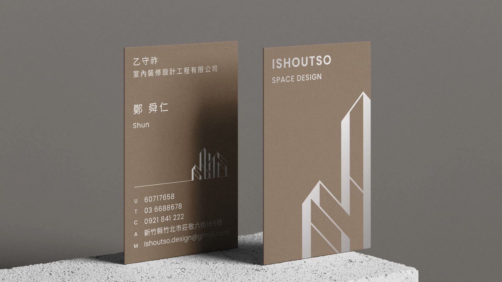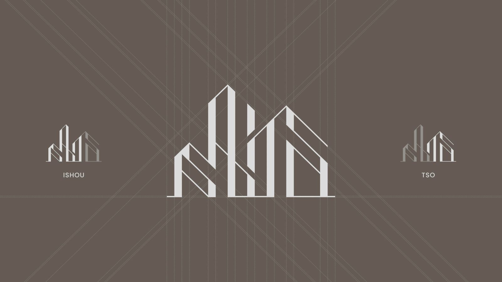商標品牌英文名稱「 ISHOUTSO 」拆解與城市線元素結合,將字母轉化為簡約幾何感