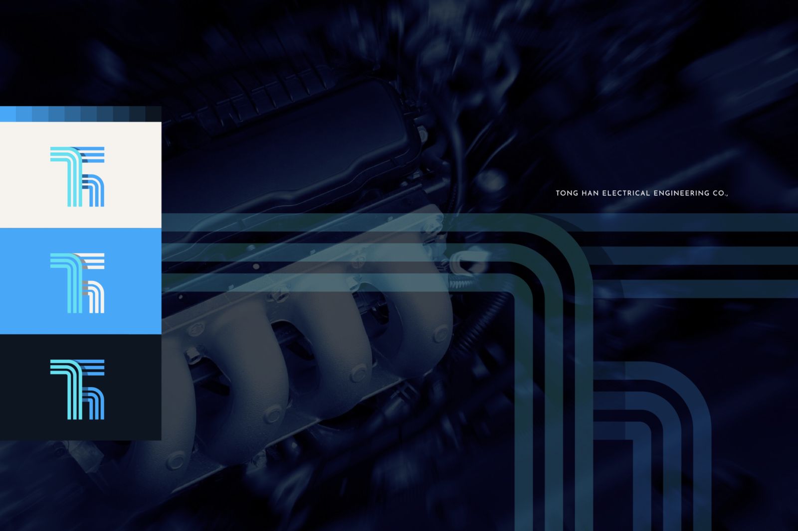 And connect the brand name abbreviation TH with several lines to create a stacking effect between the lines.