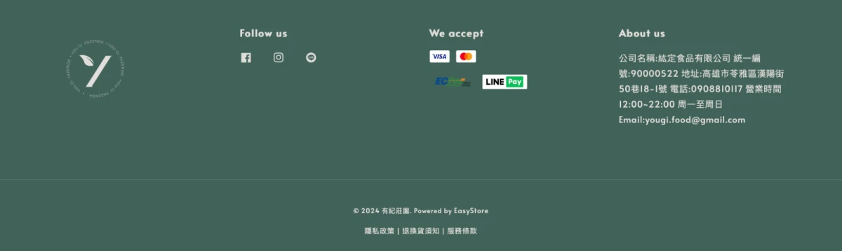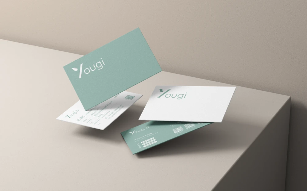 以Y結合葉子,並以英文Yougi為主減少LOGO的筆劃,搭配舒服的淺湖水色給予有紀莊園簡單純淨感,