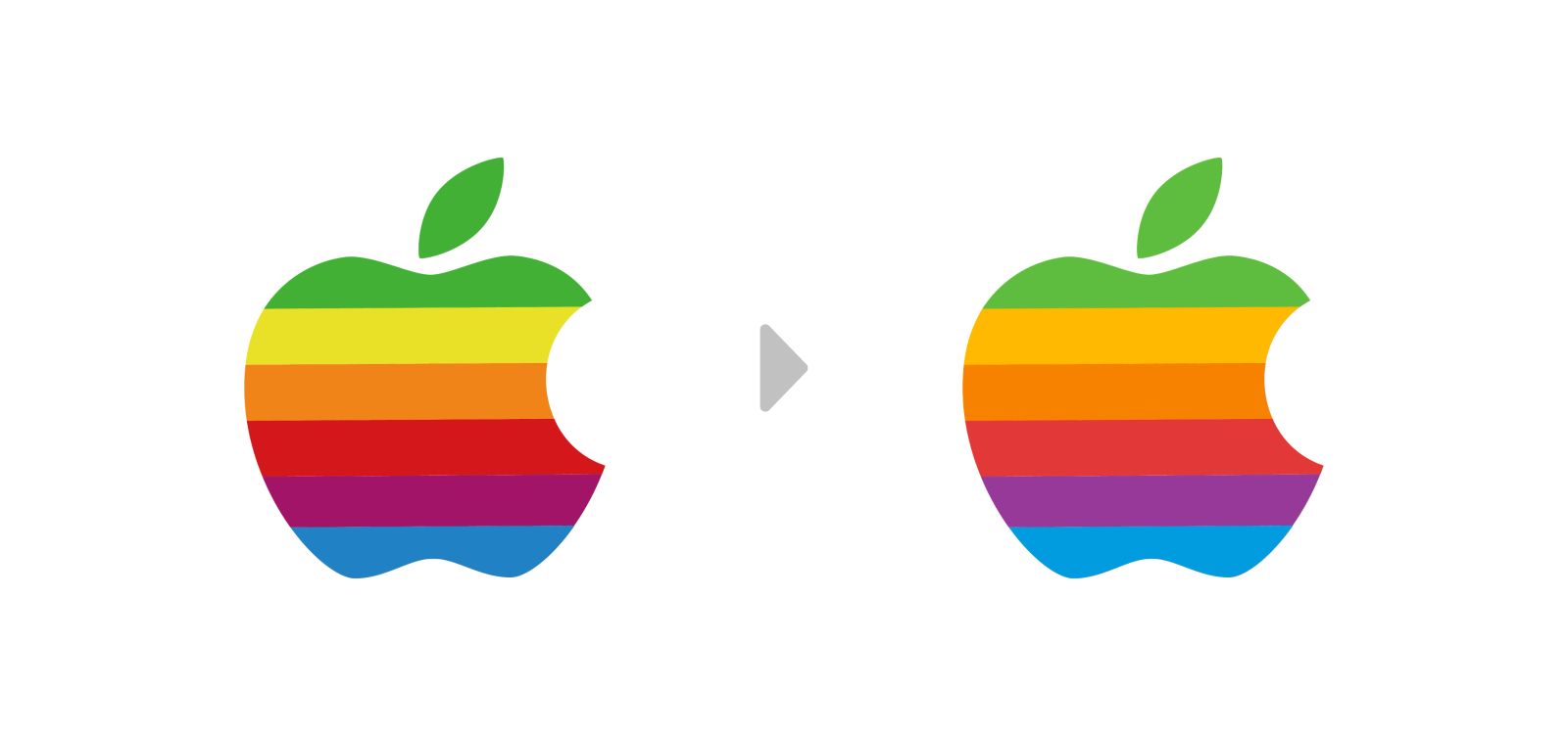 在重新設計的 Apple Logo 中,Rob Janoff採用了橫條紋的彩虹色配色,這一配色背後其實包含多重象徵意義: