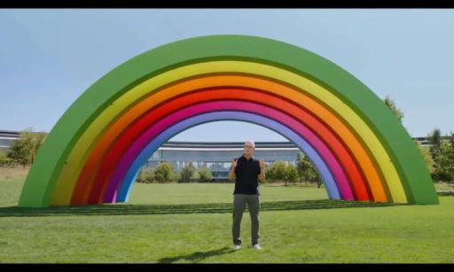 除了 Logo 回歸,Apple 亦於其總部 Apple Park 設置大型彩虹拱門裝置,由前設計總監 Jony Ive 親自操刀設計。這不僅延續彩虹 Logo 的色彩順序,更強化品牌設計與空間美學的結合,象徵蘋果依然關注「人、創意與科技」之間的平衡。