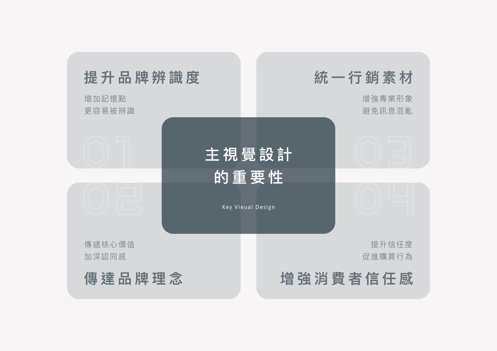 透過視覺語言,清晰地傳遞品牌的核心價值與訊息,加深受眾對品牌的理解與認同。 - 統一行銷素材: