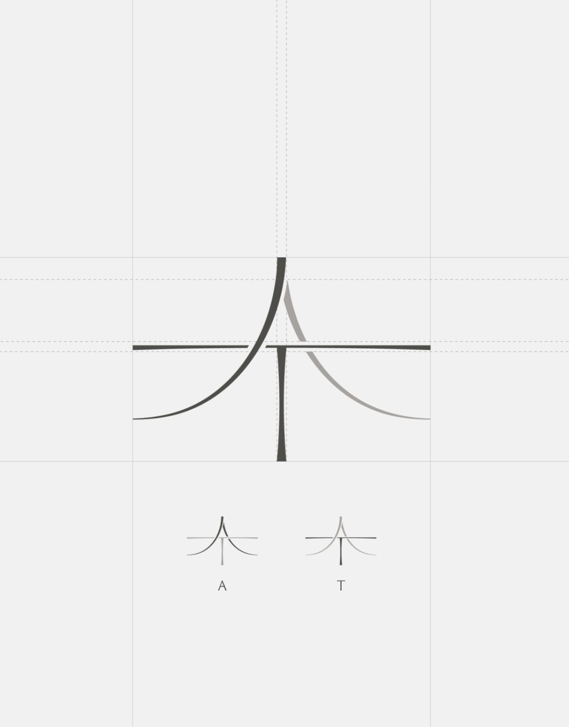 The symbol draws from the Latin letters “A” and “T”, blending seamlessly with the stroke characteristics of the Chinese logotype to ensure visual harmony and brand consistency. A layered use of brightness levels further enhances the idea of “space,” echoing the brand’s field of work.