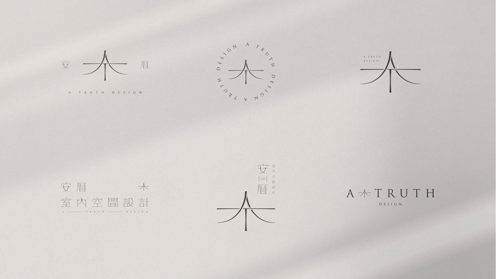 商標整體以品牌英文名稱縮寫「AT」為設計主軸。以柔和、纖細、富有彈性感粗細變化的筆畫造型繪製圖標與中文標準字。大量的留白與截斷設計產生了足夠的空氣感與舒適的空間距離。圖標則以歐文字母「AT」作為骨架,結合中文字型筆畫為圖標與標準字帶來視覺一致性,提升品牌的品牌獨特性,並運用不同明度的,為圖標添增「空間」之概念,呼應品牌行業。中文標準字以擁有寬鬆中宮的明體字型作為骨架,輕盈的字重雖輕巧但結合寬鬆的中宮後寬大的骨架使字型更為穩重,並簡化傳統筆畫造型為視覺帶出簡約質感現代風格。標準色以杏灰搭配霧棕,柔和的低飽和米系使整體視覺帶來柔和簡約質感氛圍。