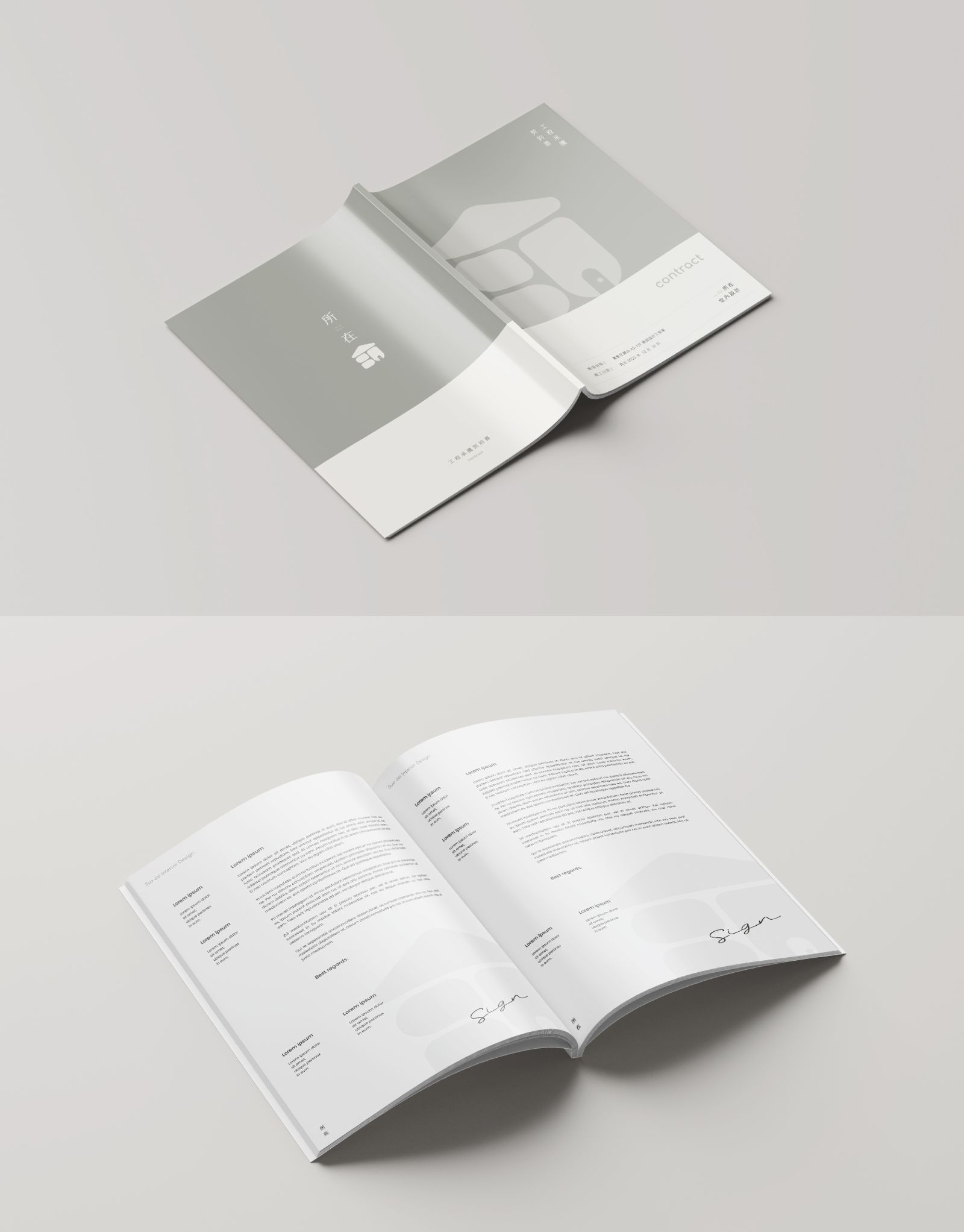 The icon design centers on the integration of the brand’s English initials “SJ” with the form of a house. The letters “S” and “J” are simplified into geometric curves, with softly rounded corners that echo the arched elements commonly found in architectural works, creating a sense of comfort and warmth within the space. A roof shape crowns the icon, completing the imagery of “home” and directly reflecting the brand philosophy of “a place to rest and unwind, a place where children grow.” The negative space at the doorway symbolizes “welcoming” and “connection,” conveying that interior design is not merely about transforming space, but about creating an entrance to life and a place of belonging. The standard color palette adopts low-saturation creamy gray tones to establish an elegant and warm atmosphere, expressing the brand’s core values of “safety, comfort, and home,” and presenting an overall visual style that is minimalist, modern, and refined.