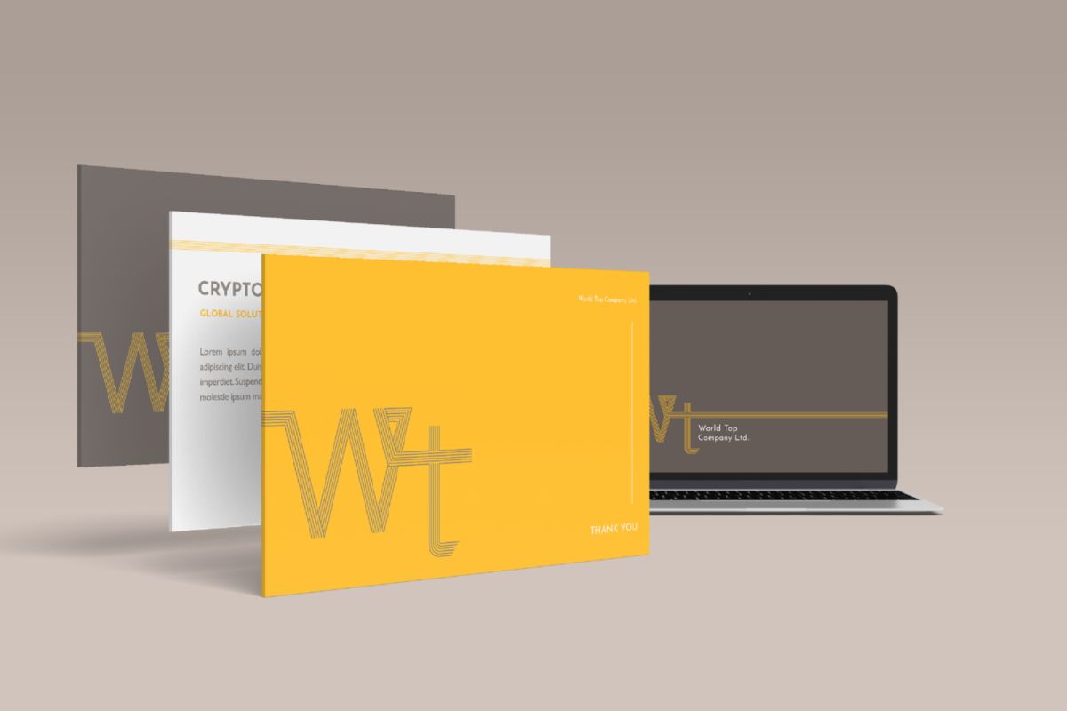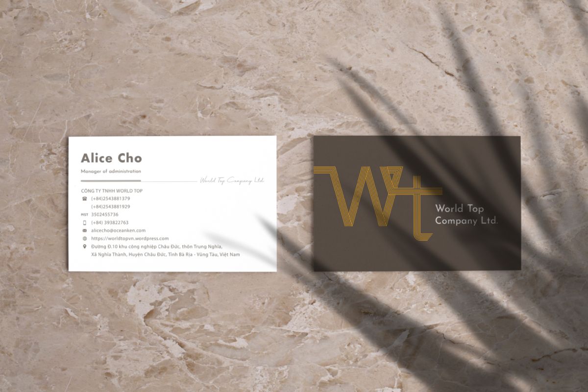 World Top以簡寫WT做為Logo的主體,線條從左方開始延伸,無斷點連接至右方,如同皮帶一體成型、彈性柔軟多變的質地,W高於T也意味著World Top能夠立足於世界頂端,成為首屈一指的皮具品牌,配色以大地色系棕色為底,黃色為主,棕色既為皮革顏色,更包含了沈穩溫暖之感受,淺色系黃色及白色即為對比色,更是賦予品牌活潑年輕之意象。