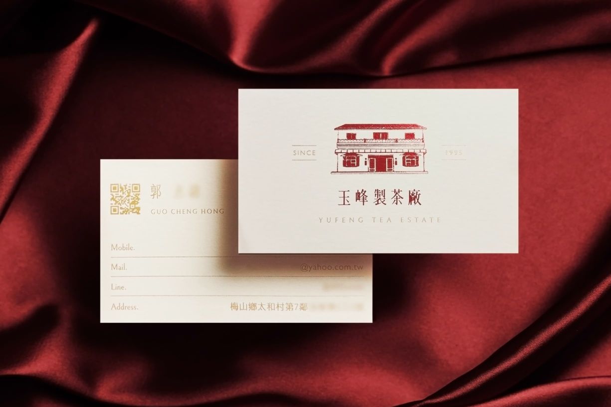 整體造型採細緻插畫風格,結合英文字體的現代比例與中文標準字的穩重結構,融合東方茶文化與西方精品美學的平衡氣質,打造專業且具國際識別度的品牌形象。標準色以「茶紅」為主調,搭配柔和米白襯底,展現玉峰製茶廠「溫暖、專業、質感、天然」的品牌形象,營造如威士忌酒莊般的優雅與深度印象。
